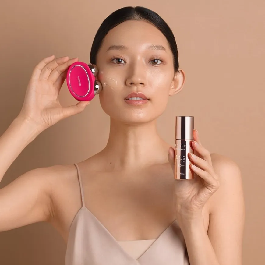 – Breng het aan op het gezicht, hals en decolleté en masseer het in de huid tot het volledig is opgenomen. Voor een betere opname van het serum raden we aan een FOREO-apparaat te gebruiken in de modus verstevigende massage.