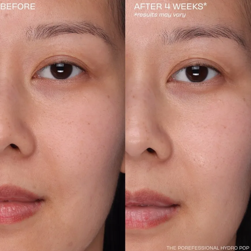 De Porefessional Hydro Pop bevat niacinamide. Het actieve ingrediënt reguleert de talgproductie in de poriën en kan ze daardoor kleiner maken door de talgproductie te normaliseren. Zichtbare poriën worden op hun beurt verfijnd door de rozenbottelextracten die het bevat. Poriën zijn niet meer zo duidelijk zichtbaar, vooral niet van een afstand. De innovatieve formule wordt afgerond met vooraf gefermenteerde cameliazaadolie. De olie maakt de huid gladder, voedt en hydrateert haar. Omdat het product is geformuleerd met een geltextuur op waterbasis, kun je het heel gelijkmatig aanbrengen. Er is ook een onmiddellijk verfrissend effect op de huid.