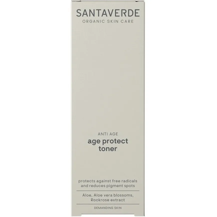 De Santaverde AGE PROTECT Toner vult de dagelijkse huidverzorgingsroutine aan met een doelgerichte formule. Het is gebaseerd op puur aloë vera sap, dat de huid hydrateert. De samenstelling is bovendien verrijkt met extracten van aloë vera bloemen en rockrose bladeren. Deze plantaardige ingrediënten staan bekend om hun antioxiderende eigenschappen. De toner is geschikt voor verschillende huidcondities, waaronder een droge, rijpere en gevoelige huid. Hij is gemakkelijk aan te brengen dankzij de spraykop en laat een aangenaam gevoel achter op de huid. De veganistische formule is verpakt in een slanke, transparante fles die de heldere inhoud zichtbaar maakt.