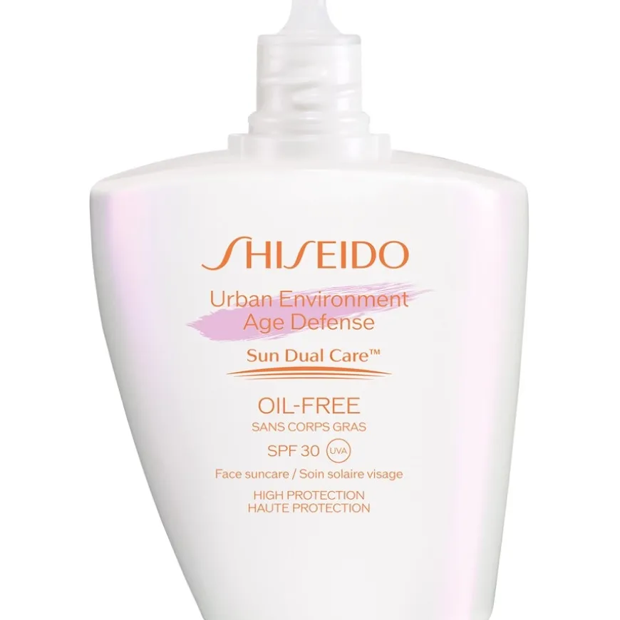 De Urban Environment Age Defence Oil-Free Sunscreen van Shiseido biedt een lichte, olievrije verzorging voor dagelijks gebruik. De snel absorberende emulsie geeft de huid een comfortabel gevoel zonder te plakken of een wit laagje achter te laten. De formule met beschermingsfactor 30 beschermt de huid tegen UVA- en UVB-stralen en de zijdezachte textuur maakt het ook geschikt als basis onder make-up. Verrijkt met hyaluronzuur, hydrateert het de huid en laat het soepel aanvoelen. Een speciaal complex beschermt de huid tegen de effecten van overtollig talg. De waterproof formule is ontworpen voor dagelijks gebruik en ondersteunt een heldere, egale uitstraling van de huid.