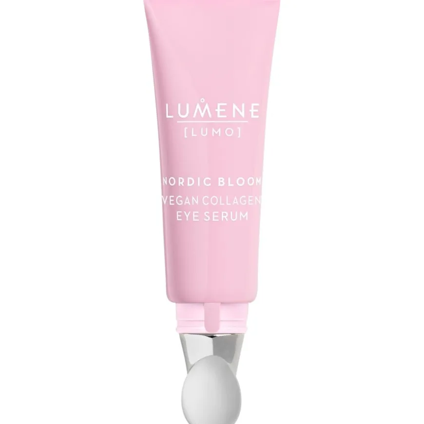 Lumene Nordic Bloom [Lumo] Vegan Collageen Eye Serum bevat geüpcycled lingonbessenwater van in het wild verzamelde Scandinavische lingonbessen, die bekend staan om hun provitamine A-gehalte. Deze provitamine helpt de elasticiteit van de huid en een gladde, jeugdige uitstraling te behouden. Het effect wordt aangevuld door drie soorten hyaluronzuur en vegan collageen om de huid diep te hydrateren en fijne lijntjes en rimpels te verminderen.Toepassing: Breng na het reinigen een kleine hoeveelheid serum aan op het gebied rond de ogen met behulp van de massage-applicator en klop vervolgens zachtjes het overtollige product in met de vingertoppen. Kan worden gebruikt als enige huidverzorging voor de oogzone of onder een oogcrème.Kleine tip: Het product kan ook worden aangebracht rond de lippen om dit gebied te hydrateren en fijne lijntjes glad te strijken.