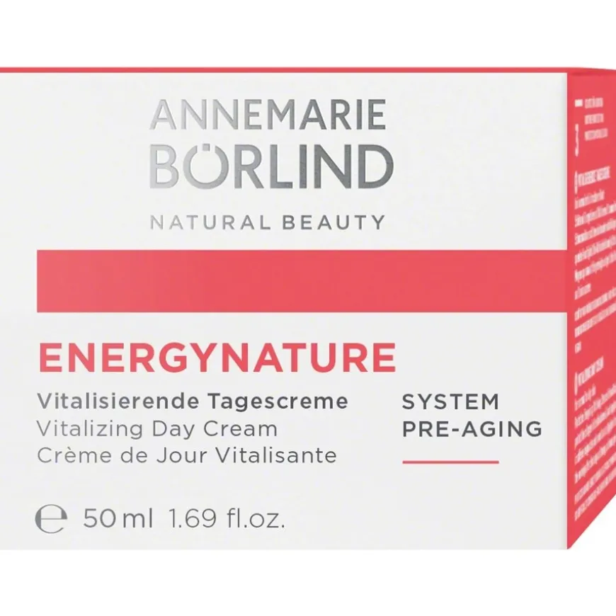 De ENERGYNATURE Vitaliserende Dagcrème van ANNEMARIE BÖRLIND geeft je ’s ochtends een fris gevoel. De crème is speciaal ontwikkeld voor de normale tot droge huid en is de ideale metgezel voor je dagelijkse routine. De formule combineert geselecteerde ingrediënten zoals organische cafeïne en stamcellen uit het Zwarte Woud. De textuur, die ’s ochtends na het reinigen wordt aangebracht en zachtjes wordt ingemasseerd, kan de huid soepel laten aanvoelen. Als onderdeel van het ENERGYNATURE SYSTEM PRE-AGING assortiment staat de crème voor een bewuste samenstelling. De crème is veganistisch en bevat geen derivaten van minerale oliën, siliconen en genetisch gemodificeerde planten.