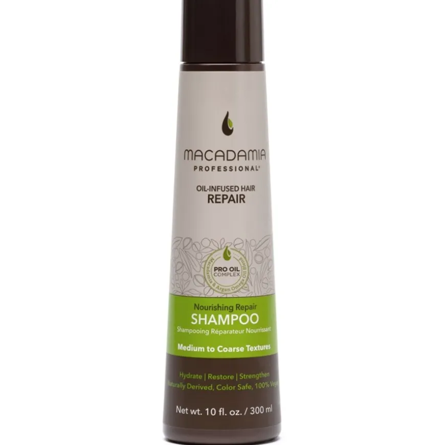 De Wash & Care Nourishing Repair Shampoo van Macadamia is een moisturiserend haarverzorgingsproduct dat vrij is van sulfaten, gluten en parabenen. Met zijn exclusieve Pro Oil Complex met argan- en macadamiaolie heeft het een herstellend en intensief voedend effect. De shampoo uit de categorie vochtinbrengende haarverzorging bevat ook avocado- en hazelnootolie, die het haar van voedingsstoffen voorzien en een antiverouderingseffect hebben. Het haarverzorgingsproduct is ook verrijkt met een combinatie van vitamine A, C en E en collageen, die het haar in balans brengen en de haarvezel versterken. De shampoo moet zachtjes in het haar en de hoofdhuid worden gemasseerd en grondig worden uitgespoeld. Oogcontact moet koste wat het kost worden vermeden. Optimale resultaten worden bereikt wanneer de voedende shampoo wordt gecombineerd met de conditioner of het haarmasker uit de reeks Macadamia’s Nourishing Moisture.