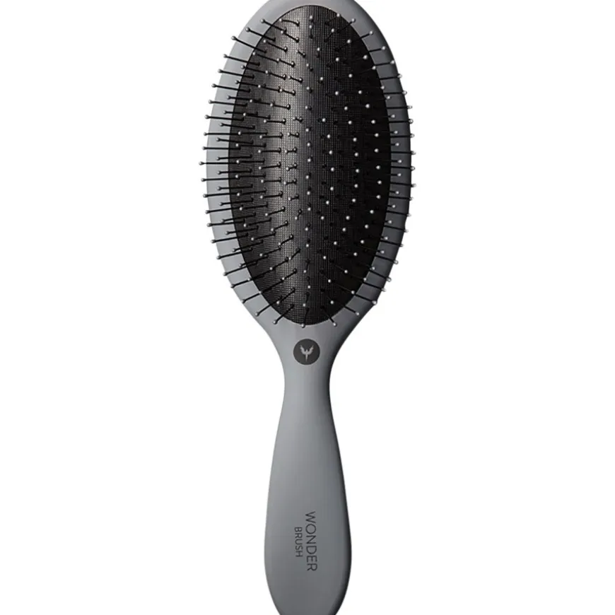 Met de HH Simonsen Wonder Brush Cool Grey kun je nat en droog haar voorzichtig ontwarren. Tegelijkertijd kun je je haar en hoofdhuid eenvoudig en gemakkelijk verzorgen tijdens het dagelijkse kammen. De borstel is uitgerust met speciale Smart-Flex borstelharen die beschadigde haarpunten en gespleten haarpunten voorkomen. Hij is ook voorzien van een 3D pad met een gebogen vorm, waardoor de borstelharen optimaal contact maken met het haar. Aan de uiteinden van de borstelharen zitten handgemaakte nopjes die bij elke borstelbeweging de hoofdhuid stimuleren. De zachte massage van de hoofdhuid bevordert niet alleen de doorbloeding van de huid, maar ook die van de haarzakjes. Met zijn ergonomische handgreep en rubberen coating ligt de beauty tool uit de Kammen & Borstels collectie perfect in de hand bij het ontklitten en stylen. Dankzij de brede borstelvorm is de Wonder Brush ideaal voor middellang tot lang haar.