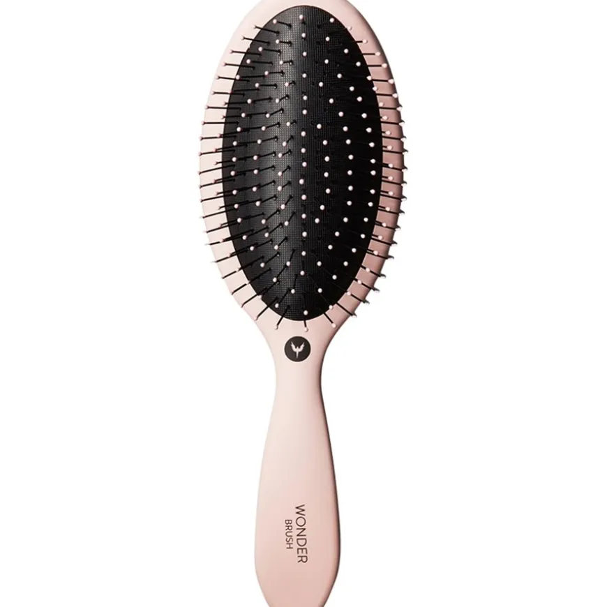 De HH Simonsen Wonder Brush Dusty Rose uit de kammen & borstels collectie is ontwikkeld om het haar en de hoofdhuid te voeden tijdens het kammen. Dit wordt mogelijk gemaakt door de speciale Smartflex borstelharen. Deze zijn bijzonder flexibel, waardoor je minder hoeft te trekken bij het ontwarren van verward haar. Zacht borstelen van het haar minimaliseert op zijn beurt het risico op haarbreuk en gespleten haarpunten. De haarborstel heeft ook een convexe 3D pad die zorgt voor optimaal contact tussen het haar en de borstelharen, ongeacht de borstelpositie. De gebogen vorm zorgt er ook voor dat de zachte, afgeronde punten van de borstelharen hun volledige potentieel ontwikkelen en de hoofdhuid masseren. De zachte massage stimuleert de doorbloeding van de haarzakjes. Een ander voordeel van de Wonder Brush is het ergonomische handvat met rubberen coating, waardoor je hem gemakkelijk kunt vasthouden bij het ontklitten en stylen.