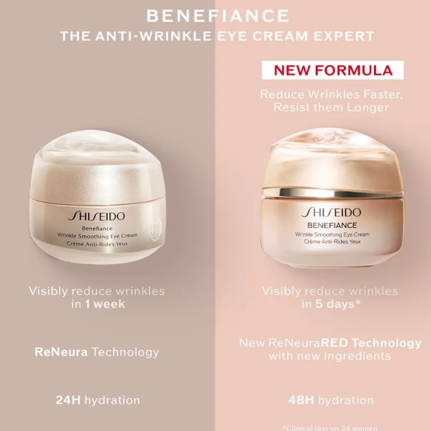 De Benefiance Wrinkle Smoothing Eye Cream van Shiseido is speciaal ontwikkeld voor de gevoelige huid rond de ogen en is geschikt voor alle huidtypes. De formule is verrijkt met het Kombu Bounce Complex, waterpeptiden en carnosine. De romige textuur is aangenaam om aan te brengen en laat de huid glad aanvoelen. Bij dagelijks gebruik kan de oogcontour er gladder en stralender uitzien. De huid rond de ogen voelt gehydrateerd en verfrist aan na het aanbrengen. Voor een dagelijkse routine is een hoeveelheid ter grootte van een rijstkorrel die voorzichtig met de ringvinger wordt aangebracht voldoende. Als onderdeel van de Benefiance gezichtsverzorgingslijn is de dermatologisch geteste oogcrème een aanvulling op je huidverzorgingsroutine.