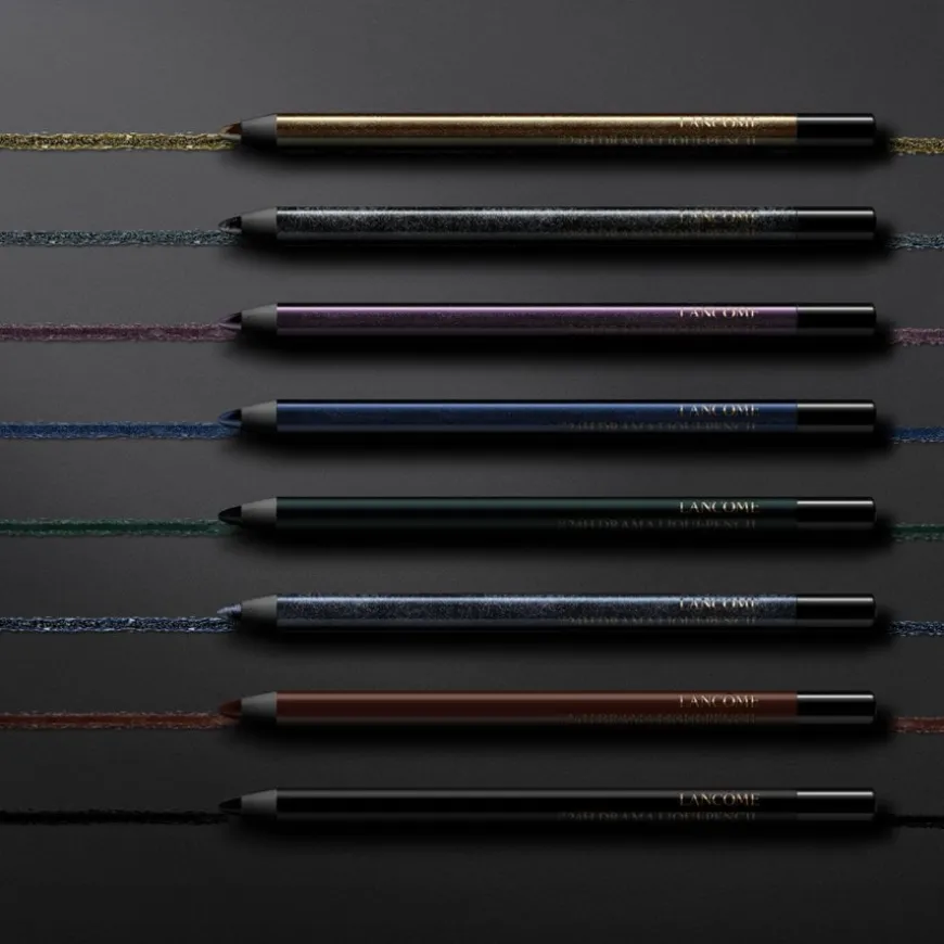 Het 24H Drama Liquid Pencil van Lancôme combineert de intense kleur van een vloeibare eyeliner met het gemak van een potlood. De romige geltextuur glijdt moeiteloos over het ooglid en creëert in één beweging een nauwkeurig, ultragepigmenteerd lijntje. Afhankelijk van je voorkeur kun je kiezen uit verschillende afwerkingen, van mat tot metallic tot glittereffecten, voor een oogmake-up op maat. De speciale formule met dubbele polymeercomplexen is waterproof en houdt tot 24 uur lang. De eyeliner droogt snel, vlekt niet en behoudt de hele dag zijn expressieve kleurintensiteit.