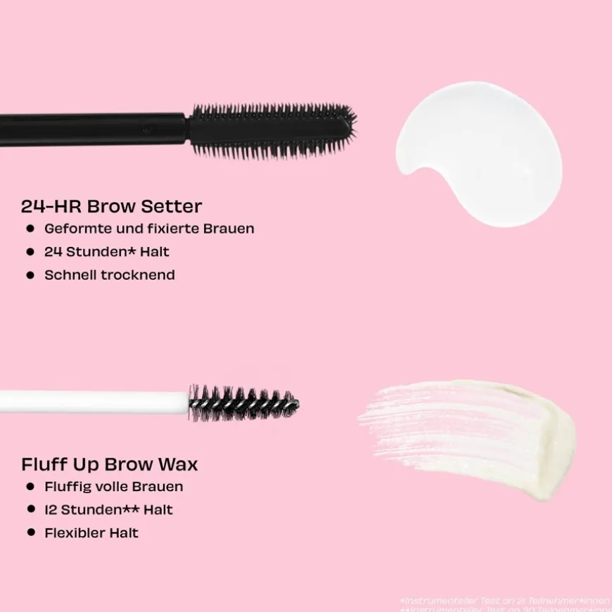 Het dubbelzijdige borsteltje maakt het gemakkelijker om de wenkbrauwgel aan te brengen. Als je klaar bent met het opmaken van je wenkbrauwhaartjes met een wenkbrauwpotlood of wenkbrauwborsteltje, breng dan eerst de 24-HR Brow Setter aan op alle wenkbrauwhaartjes van wortel tot punt met de lange kant van het borsteltje. Gebruik in de tweede stap de kant met de korte haartjes van het borsteltje. Breng hiermee de wenkbrauwen in een perfecte boog. De wenkbrauwhaartjes worden op deze manier gefixeerd. De huls van de applicator ligt prettig in de hand en zorgt ervoor dat het kleine borsteltje goed geleid kan worden. Het gebogen design van de zilverkleurige huls met roze letters en Benefit opschrift geeft de huls een exclusieve flair.