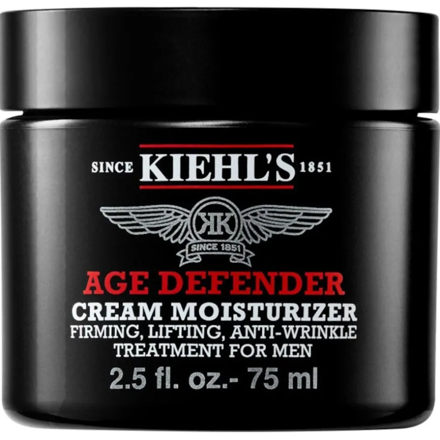 De anti-aging verzorging Age Defender Moisturizer van Kiehl’s is de ultimale anti-rimpel gezichtscrème voor mannen. Dankzij het liftende effect heeft deze huidverstevigende moisturizer een dubbel effect: De huid wordt intensief gehydrateerd en tegelijkertijd strakker, waardoor rimpels en lijntjes zichtbaar verminderen. Dit wordt mogelijk gemaakt door een combinatie van cafeïne, lijnzaadextract en sojaproteïne. Terwijl het vette lijnzaad de stevigheid van de huid verhoogt en rimpels vermindert, vermindert soja-eiwit de zichtbaarheid van ruwheid en rimpels. Daarnaast helpt de geurloze cafeïne wallen te verminderen. De revitaliserende formule heeft ook een zacht exfoliërend effect, waardoor de huid gladder en egaler wordt.De anti-aging gezichtsverzorging wordt na het reinigen en scheren op de huid aangebracht en zachtjes ingemasseerd. Idealiter gebruik je het serum uit de serie vóór de Age Defender om het effect van beide producten te versterken.