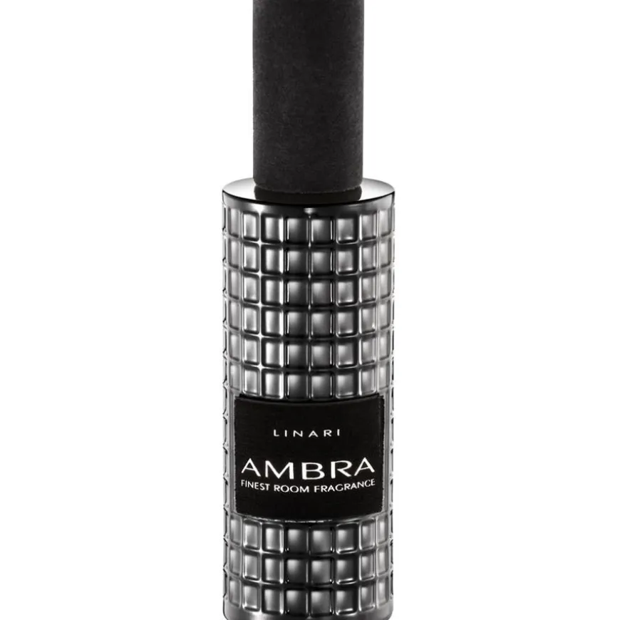 De oriëntaalse geur wordt gekenmerkt door amber, dat wordt afgerond met bloemige en wrange noten. Een fijn briesje van vanille, heldere nuances van roos en jasmijn en aroma’s van sandelhout en cederhout maken van de roomspray een aromatisch vuurwerk. Eén verstuiving met de verstuiver is genoeg om de kamer te vullen met een passionele sfeer. Gelukkig is de elegante outfit van de Room Perfume zo representatief dat het flesje Linari’s betoverende Ambra geur altijd bij de hand is in de lounge.