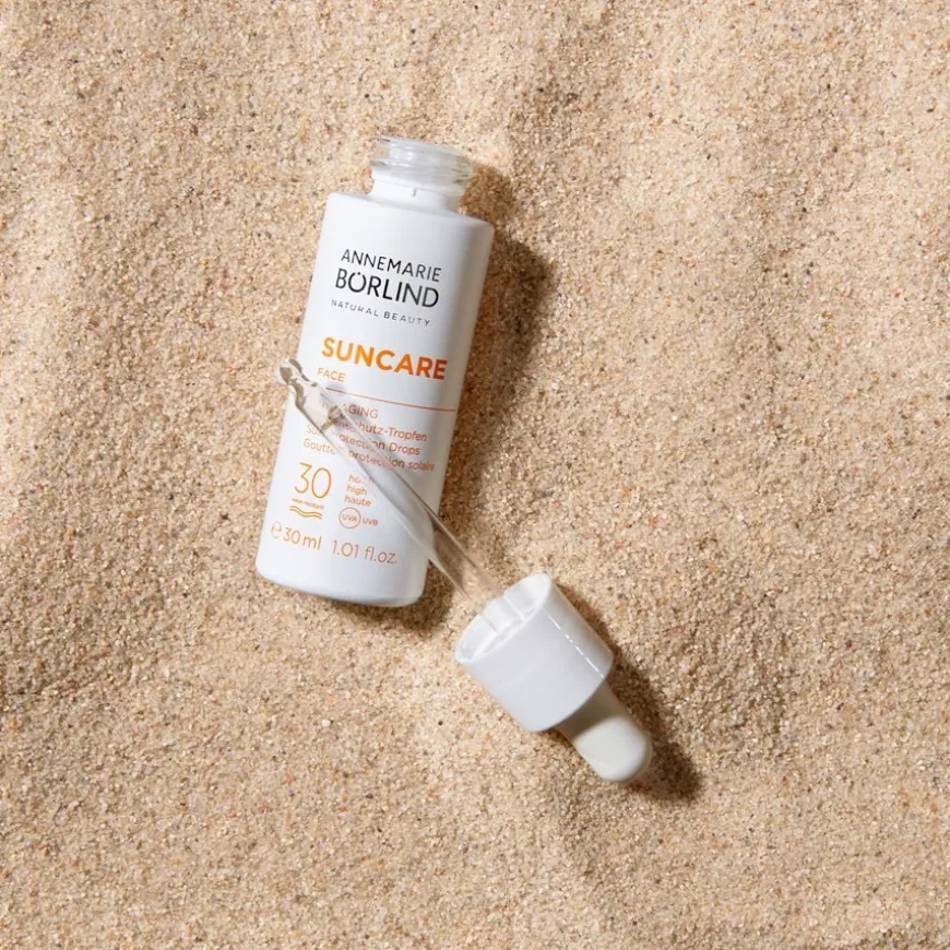 De ANNEMARIE BÖRLIND SUNCARE FACE antiverouderingszonbeschermingsdruppels met beschermingsfactor 30 bieden gerichte verzorging voor het gezicht. De lichte textuur in druppelvorm maakt het gemakkelijk te integreren in je dagelijkse routine. Het kan alleen op de huid worden aangebracht of gemengd met je gebruikelijke dagelijkse moisturizer. De formule is gebaseerd op een combinatie van veganistische Samphira-olie en algenextracten. Het product is ontwikkeld om de huid te beschermen tegen de effecten van blootstelling aan de zon en vermijdt bewust siliconen, derivaten van minerale oliën en de UV-filters oxybenzone en octinoxaat. De waterproof formule biedt UVA- en UVB-bescherming en is een aangename aanvulling op de dagelijkse zonbescherming voor het gezicht en decolleté.
