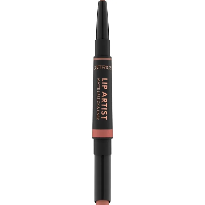 Met de Artist Matte Lipstick & Liner van Catrice koop je een 2-in-1 lipstick met een matte finish die zorgt voor een prachtige make-up look met een kleurrijk contrast. De lipliner is iets donkerder zodat hij de lippen effectief omlijst. Je kunt kiezen uit verschillende kleurvarianten van het duo. De textuur van het product is bijzonder romig, wat zorgt voor een comfortabele applicatie. Je krijgt make-up zonder dierlijke ingrediënten, die ook vrij is van parabenen, olie, alcohol, microplastics en gluten.