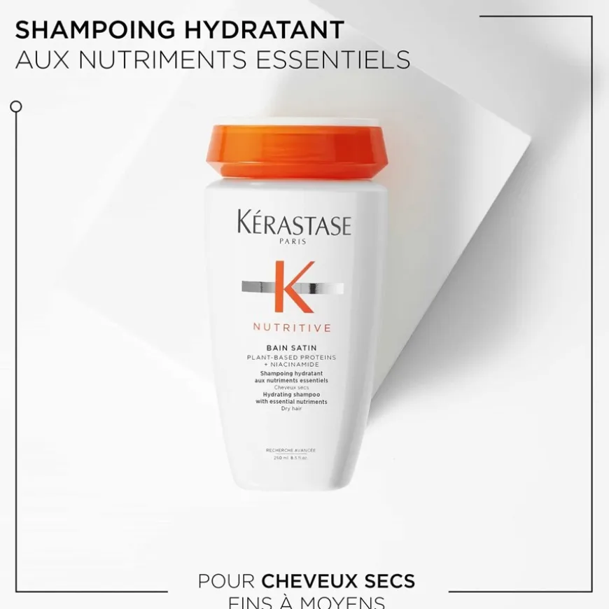 Nutritive Bain Satin Shampoo van Kérastase verwent het haar met effectieve reiniging en verzorging, maakt het glanzend en geeft het veel volume. Het beschermt droog haar tegen vochtverlies door een ultieme vochtboost te geven en het vocht lang vast te houden in de haarstructuur. Het maakt het haar zacht en soepel, voedt het en versterkt de beschermende barrière. Dankzij de crèmige, delicate gelformule geeft het een luchtig, gewichtloos resultaat. Breng de shampoo aan op nat haar en laat het schuimen. Masseer de formule zachtjes in de lengten en op de hoofdhuid en spoel daarna grondig uit. Ervaar zijdezacht, vol haar met een schitterende glans!