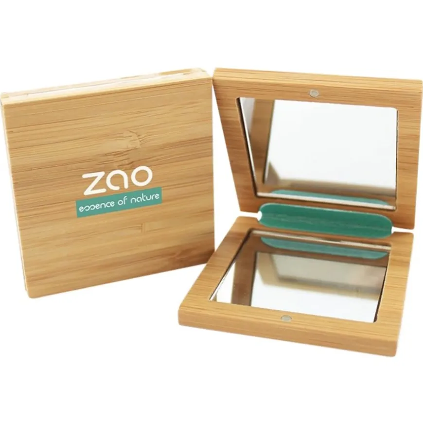 De sluiting is daarom een interne magnetische kop die het doosje naadloos sluit. Daardoor, en omdat hij maar 7,5 x 7,5 cm groot is, past de Zao Bamboo Mirror perfect in elke tas, of je nu op reis bent, op je werk of ’s avonds in de club. De naam van het label en het motto “essentie van de natuur” zijn te lezen op de voorkant. En omdat er alleen gecertificeerde biologische bamboe wordt gebruikt voor de accessoires, kun je natuurlijk de fijne nerf van het lichtgekleurde hout zien. Het is altijd anders en maakt van elke Zao Bamboo Mirror een kleine one-off.