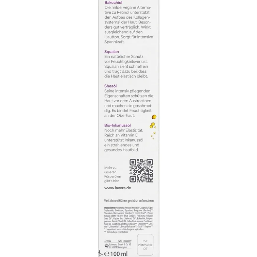 Huidverzorging volgens biologische normen: De beauty body oil van Lavera uit de Body Lotion en Milk lijn biedt dit en nog veel meer. De pompflacon van 100 ml bevat een olie die geschikt is voor alle huidtypes. Naast mensen met een normale huid kunnen ook mensen met een droge huid er baat bij hebben. De beauty body oil is dermatologisch getest en vrij van parabenen en paraffine. Het is ook pH-neutraal, wreedheid-vrij en veganistisch.
