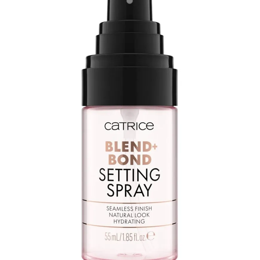 De Catrice Blend + Bond Setting Spray laat zich op de huid neerslaan als een gewichtloze, fijne nevel en zorgt voor een natuurlijke, frisse finish. De speciale eigenschap van deze spray is dat hij poeder en vloeibare texturen naadloos vermengt, wat kan bijdragen aan een bijzonder egale make-up look. De spray is veelzijdig: hij kan worden gebruikt om de huid voor te bereiden op make-up, tijdens het aanbrengen om het blenden te optimaliseren of als laatste stap om de uiteindelijke look te fixeren. De lichtgewicht formule, verrijkt met hyaluronzuur en haverextract, verzwaart de huid niet en is ook ideaal voor touch-ups tussen make-up applicaties door.