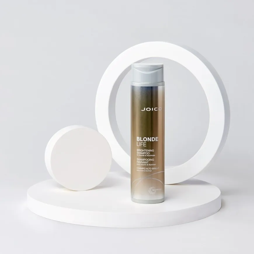 Joico’s Blonde Life Brightening Shampoo laat dof haar glanzen en behoudt de kleurbriljantie door groene en gele tinten tegen te gaan. Het reinigt het haar en de hoofdhuid op milde wijze en voorziet ze van veel vocht. De shampoo is geschikt voor alle blondtinten, natuurlijk, gekleurd of lichter. Kan dagelijks gebruikt worden. Masseer het in nat haar, laat het kort inwerken en spoel het grondig uit. Geniet van zijdezacht haar in levendige blondtinten en met een magische glans!