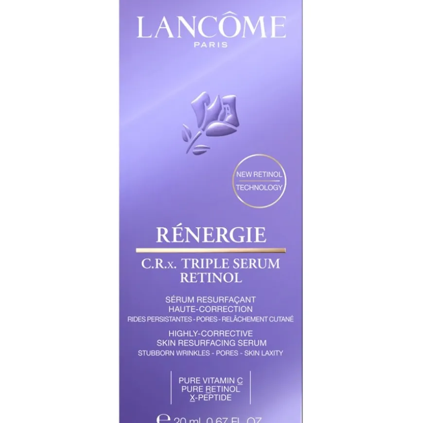 De Rénergie C.R.x. Triple Serum Retinol van Lancôme presenteert zich als een zorgvuldig ontworpen nachtverzorgingsproduct. In een speciaal ontwikkelde 3-kamerfles worden drie afzonderlijke formules vers gehouden tot het moment van aanbrengen. De texturen versmelten pas wanneer ze op de huid worden aangebracht en ontvouwen hun samenstelling van retinol, vitamine C en X-peptide met ceramiden. Dit nachtserum is ontwikkeld om de huid ’s nachts te begeleiden en kan bij regelmatig gebruik bijdragen aan een verfijnde huidtextuur. Lijntjes en pigmentvlekken kunnen vervagen, terwijl de teint er egaler en stralender uitziet. Het serum, dat geschikt is voor alle huidtypes, wordt geleidelijk aangebracht om de huid te laten wennen aan de retinol. Het wordt aanbevolen om te beginnen met één applicatie om de drie nachten en de frequentie langzaam op te voeren naar dagelijks gebruik. Bescherming tegen de zon in de ochtend is essentieel tijdens de inwerkperiode.</p