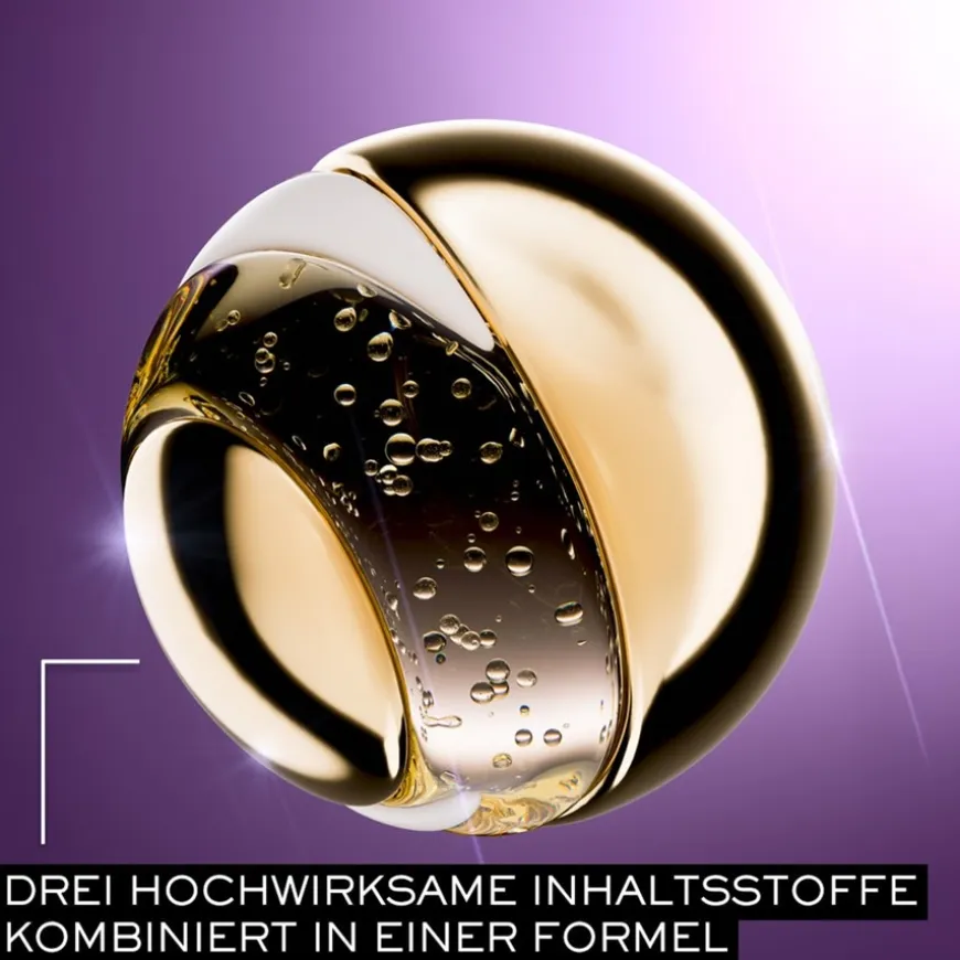 - Nachtserum dat drie formules combineert in een flesje met 3 kamers.</li