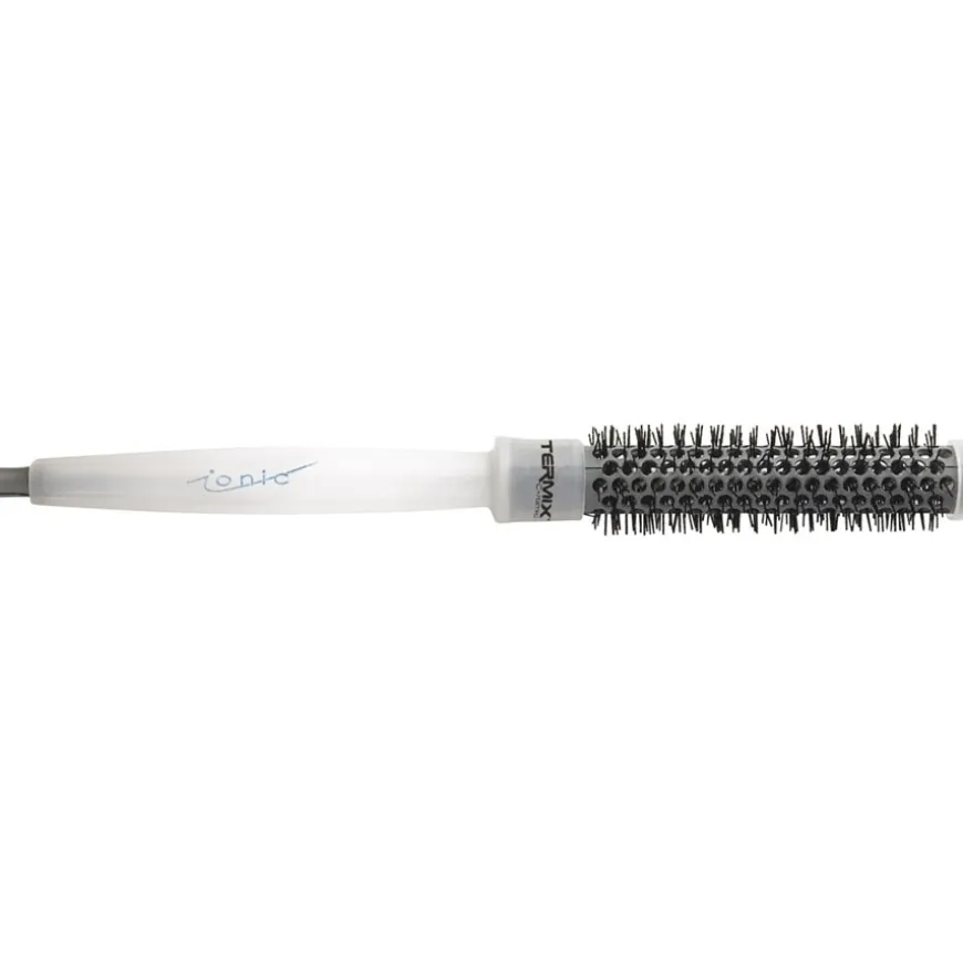 De flexibele nylon haren van de ronde borstels uit de C-Ramic Ionic serie zijn geïoniseerd. Dit voorkomt dat het haar statisch geladen raakt tijdens het kammen. Vliegend en pluizig haar behoort daardoor tot het verleden. In plaats daarvan zorgt ionisatie voor een extra portie glans zonder het haar te belasten of te beschadigen. En last but not least liggen de borstels perfect in de hand dankzij een ergonomisch handvat en kun je je haar bewerken zonder moe te worden.
