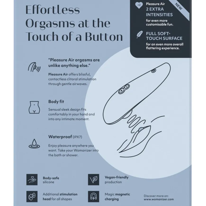 De Womanizer Classic 2 opent een nieuwe vorm van stimulatie met zijn innovatieve Pleasure Air Technologie. In plaats van vibraties gebruikt dit apparaat zachte luchtdrukgolven voor een aanraakvrije ervaring. Het ergonomische ontwerp vormt zich comfortabel naar het lichaam en zorgt voor een intuïtieve bediening. Met tien fijn af te stellen intensiteitsniveaus kan de stimulatie worden aangepast, van zacht tot intens. Het lichaamsvriendelijke siliconen oppervlak voelt zacht en glad aan. Dankzij de waterdichte eigenschappen (IPX7) kan de Classic 2 ook in bad of onder de douche gebruikt worden, wat de toepassingsmogelijkheden vergroot. Na gebruik zorgt de praktische afterglow-functie voor een zachte afwerking door het apparaat terug te zetten op de laagste stand. Opladen gaat eenvoudig via een magnetische USB-kabel.