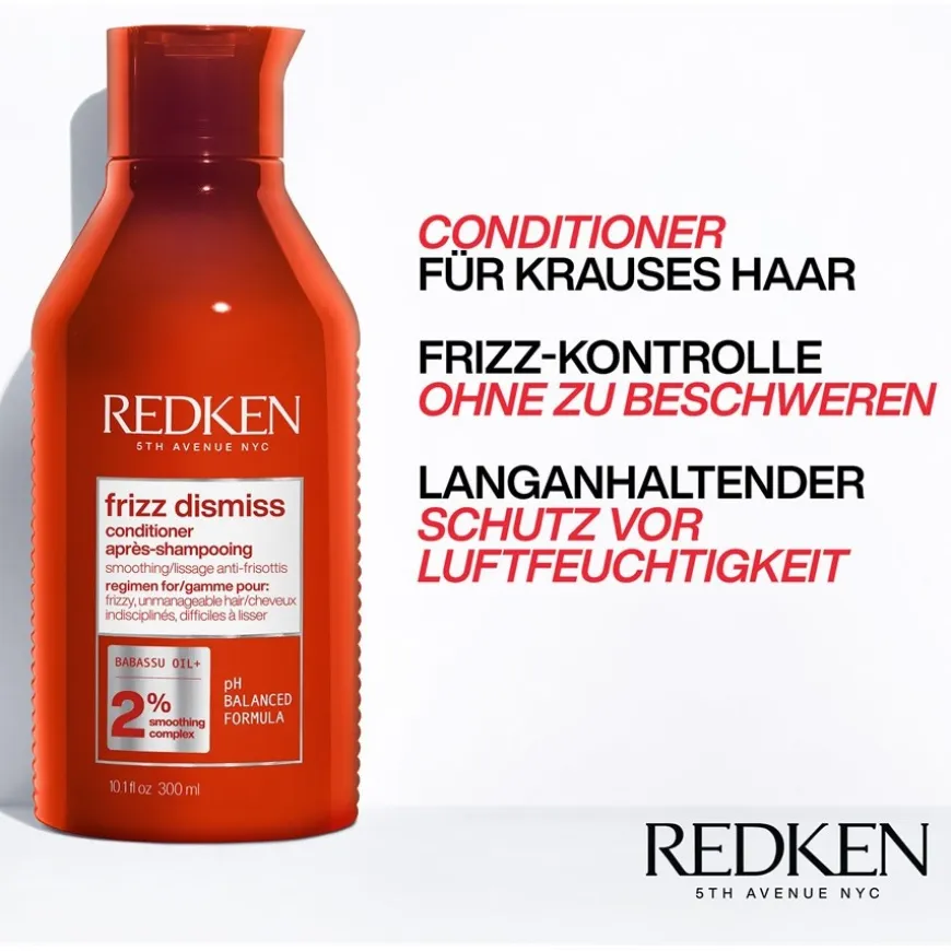De Frizz Dismiss Conditioner van Redken hydrateert het haar en verwent het met zachte verzorging. Het voedt het haar, herstelt het en beschermt het op betrouwbare wijze tegen pluis en vochtigheid. Het is geschikt voor alle haartypes. Masseer de conditioner in nat haar na het wassen. Spoel het grondig uit na een korte inwerktijd en geniet van perfect ontward, glad haar dat prachtig glanst!