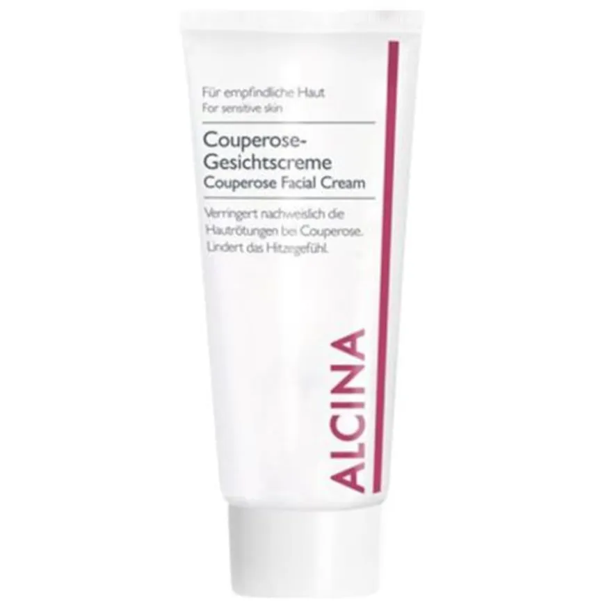 Gevoelige Huid Couperose Gezichtscrème van Alcina is de probleemoplosser voor couperose. Het bevat een speciaal complex van actieve ingrediënten dat de verwijde adertjes aanpakt en de roodheid van de huid aantoonbaar en duurzaam verlicht. De gezichtscrème vermindert ook het onaangename warmtegevoel dat vaak gepaard gaat met roodheid. De gezichtscrème is speciaal ontwikkeld voor de rode, overgevoelige huid en kan de weerstand tegen vrije radicalen verbeteren en de bloedvaten verstevigen met ingrediënten als calendula, fyto-actieve stof en paardenkastanje. De conditie van de huid wordt snel en aanzienlijk verbeterd. Naast de versterkende plantaardige stoffen bevat de crème voedende actieve ingrediënten die je huid kalmeren en merkbaar gladder maken. De gezichtscrème moet ’s ochtends en ’s avonds op een gereinigd gezicht worden aangebracht. Als je het effect wilt versterken, moet je het Couperose Serum voor gebruik op de huid aanbrengen. Regelmatig gebruik is een vereiste.
