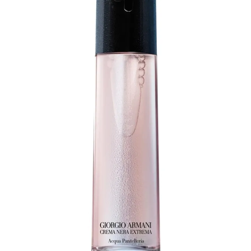 De Crema Nera Acqua Pantelleria van Giorgio Armani is een gezichtslotion die een bijzondere applicatie-ervaring biedt. De aanvankelijk gelachtige consistentie verandert bij contact met de huid in een delicaat water dat zich gemakkelijk laat verdelen. De formule is verrijkt met vier essentiële mineralen, grapefruitextract en Reviscentalis™, een extract van een wederopstandingsplant. De formule bevat geen parabenen, paraffines of ftalaten en is niet-comedogeen. De lotion kan worden aangebracht met je vingers of een wattenschijfje na het reinigen. De lichtroze vloeistof is verpakt in een elegante glazen fles van 150 ml en past harmonieus in de dagelijkse routine.