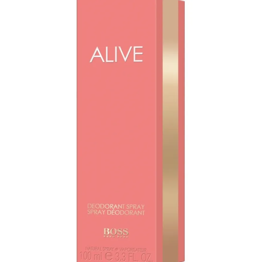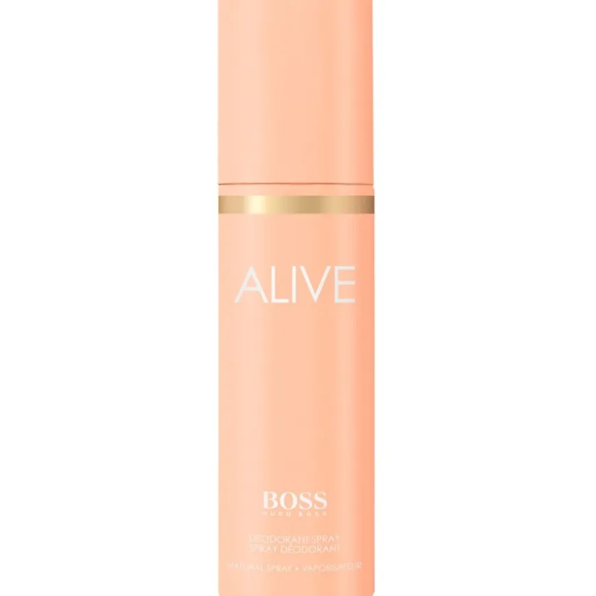 ontwikkelt zich uit frisse appelsmaken, zwarte bes en pruim. Samen stralen ze een opwindend optimisme uit. De topnoot wordt aangevuld door een vrouwelijke hartnoot van bloemige jasmijn sambac en tijm. De ALIVE deodorant wordt afgerond met houtachtige aroma’s van Chinese ceder, sandelhout en olijfhout en vanille absolue in de basisnoot. Spray het direct na het douchen op en de magie van deze deodorant van Boss omhult elke vrouw. De deodorant spray van de nieuwe geur van BOSS is voor alle moderne vrouwen die niet wachten, maar vol vertrouwen hun dromen verwezenlijken. Ze zijn succesvol en levendig – net als de geur BOSS ALIVE.