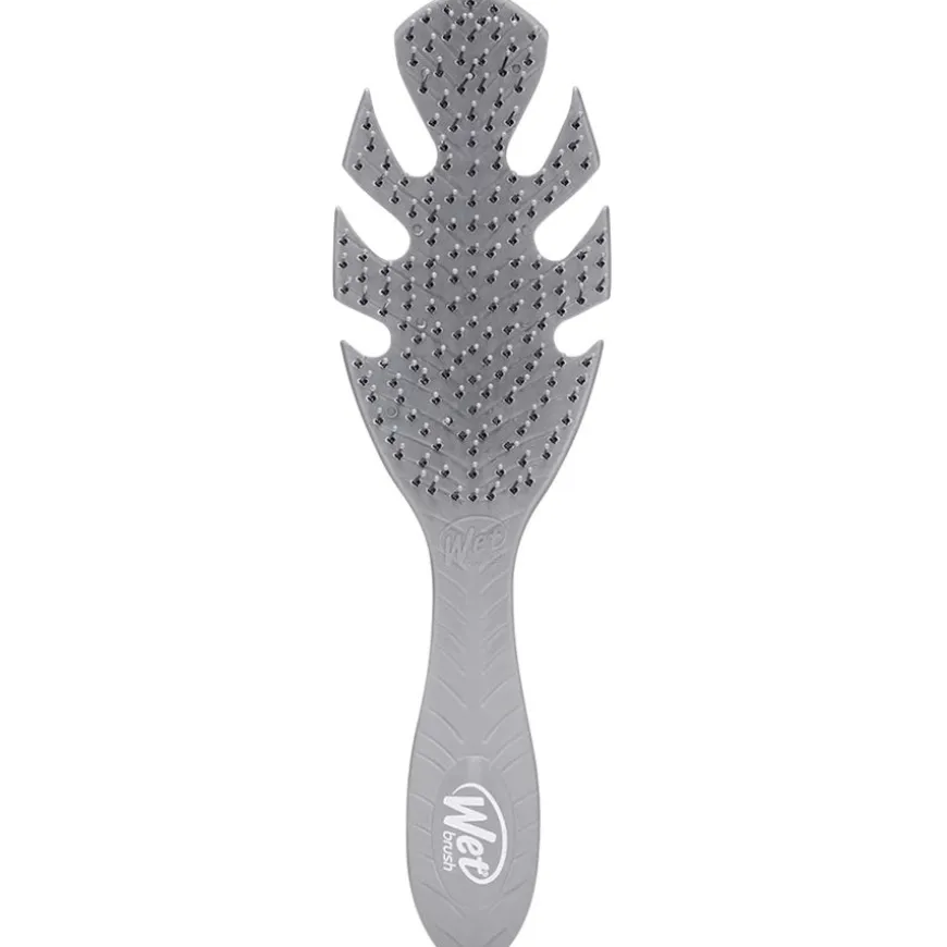 Met de Wet Brush Detangler Grey uit de Go Green lijn kun je je haar op een zachte manier kammen en temmen. De haarborstel bestaat uit een borstellichaam van 58% plantaardig kunststof en ultrazachte borstelharen. Met zijn extravagante bladvorm glijdt de ontklitter als vingers door het haar en temt zelfs weerbarstig haar. Dankzij de ultrazachte IntelliFlex borstelharen, die licht buigen tijdens het kammen, kunnen knopen en klitten er gemakkelijk uitgekamd worden – ongeacht of het haar nat of droog is. Zacht borstelen zonder trekken en scheuren maakt het kammen volledig pijnloos. Het beschermt ook tegen haarbreuk en broze punten.