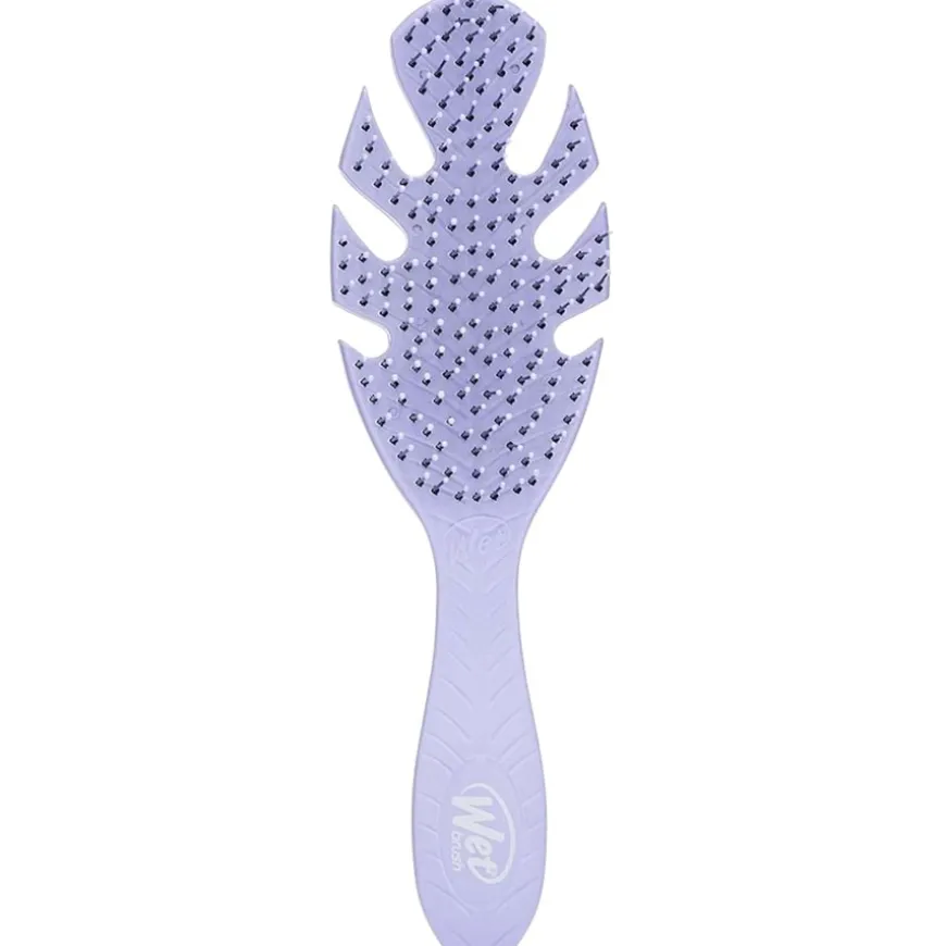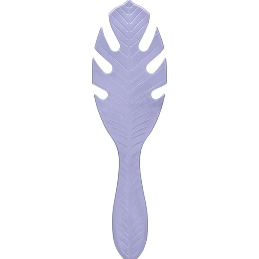 De Wet Brush Go Green Detangler Lavender is de perfecte keuze voor het zachtjes kammen van haar. De borstel is gemaakt van 58% plantaardig plastic in de vorm van een blad. Hij glijdt door het haar als vingers, terwijl de ultrazachte IntelliFlex borstelharen voor een zachte ontwarring zorgen en zelfs weerbarstig haar temmen. De borstelharen buigen lichtjes tijdens het kammen, waardoor je knopen en klitten eruit kunt kammen zonder te trekken en te scheuren. Ongeacht of je nat of droog haar ontklit: doorkammen is niet alleen pijnloos, maar vermindert ook breuk en broze punten.
