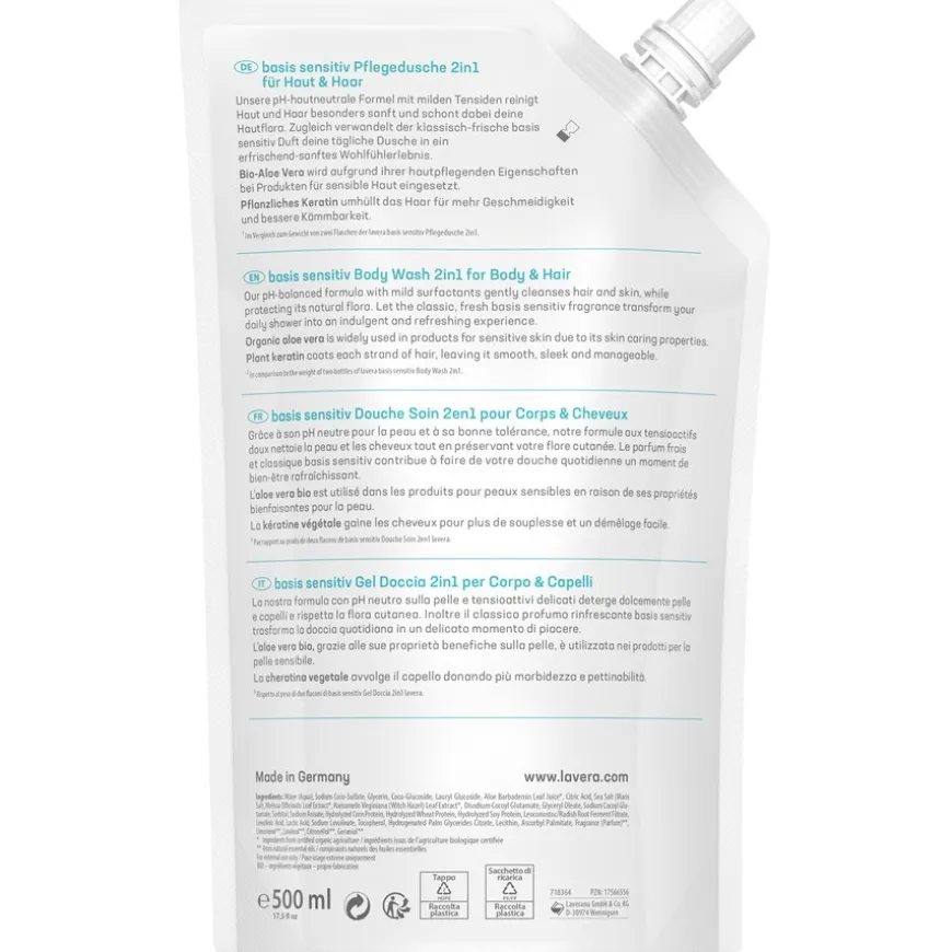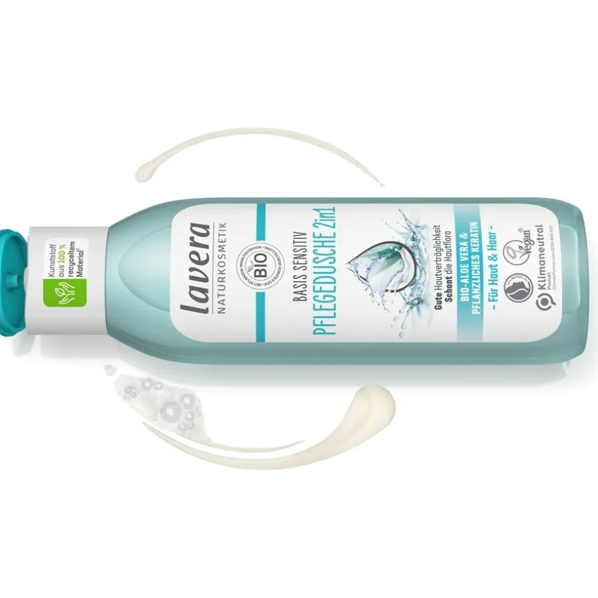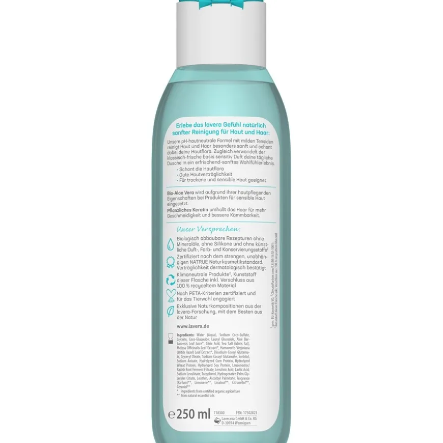 Lavera huidverzorging bevat organische aloë vera – een natuurlijk ingrediënt dat in cosmetica wordt gewaardeerd om zijn hydraterende eigenschappen. Je huid wordt intensief gehydrateerd tijdens het douchen en voelt daarna heerlijk gevoed en zacht aan. Het is een 2-in-1 product dat je ook kunt gebruiken voor het dagelijks wassen van je haar. Plant keratine versterkt elke haarvezel. Je haar wordt aangenaam handelbaar en kan worden gekamd en gestyled zonder pijnlijk trekken.
