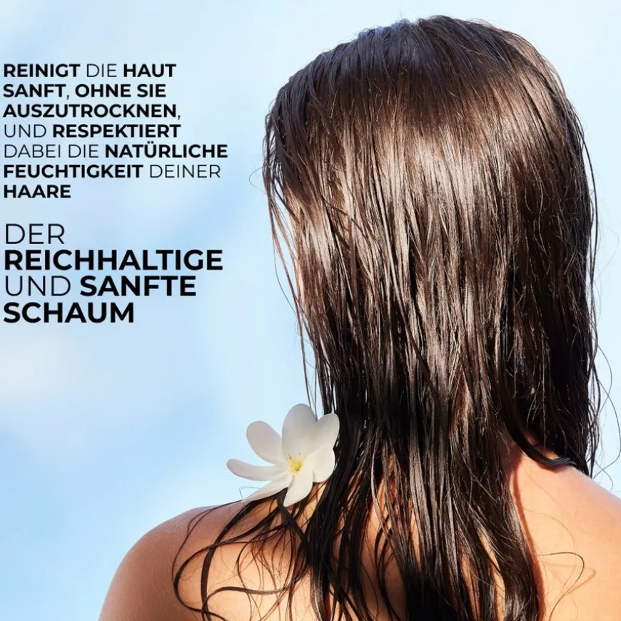 Het Monoï sulfaatvrije douchegelconcentraat reinigt de huid op milde wijze zonder de natuurlijke vochtbalans te verstoren. Het voedt ook het haar zonder het uit te drogen.Het gulle, zacht omhullende schuim laat een delicate geur achter op de huid.99% van de ingrediënten zijn biologisch afbreekbaar.
