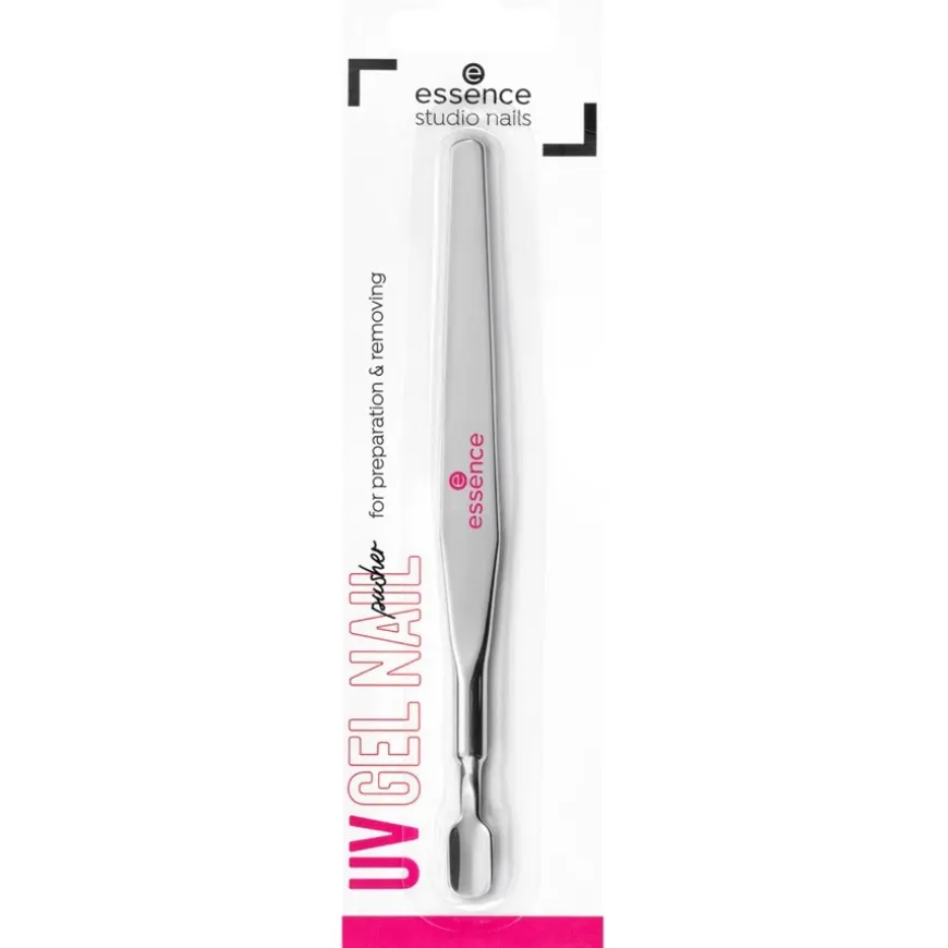 Een praktisch hulpmiddel voor het verwijderen van je oude UV-nagellak is de hoogwaardige Studio Nails UV GEL NAIL Pusher van het cosmeticamerk Essence. Deze nagelduwer maakt het verwijderen zeer eenvoudig en zacht. Je kunt de beautytool ook gebruiken om je nagelriemen voorzichtig terug te duwen en je natuurlijke nagels voor te bereiden op de komende gelmanicure.