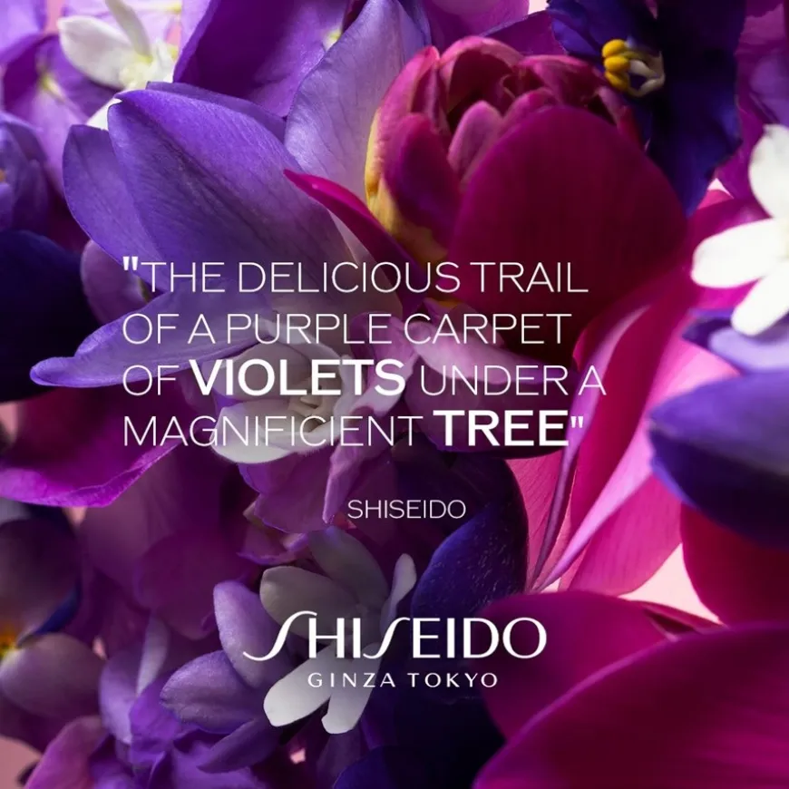 Ginza Murasaki van Shiseido is geïnspireerd door de Japanse cultuur en ontvouwt een compositie die kracht en elegantie combineert in één geur. De kleur Murasaki, een edel viooltje, staat in Japan traditioneel voor adel en verfijning. Dit eau de parfum haakt in op deze symboliek en interpreteert deze op een moderne manier. De geurreis begint met een fruitige topnoot van granaatappel en Fuji appel, vergezeld door delicate viooltjesbloesem. In het hart ontvouwt zich een boeket van jasmijn en blauwe regen, wat de geur een bloemige diepte geeft. De compositie wordt afgerond door een warme basis van sandelhout en kasjmierhout, die zorgt voor een langdurig en gelaagd karakter. De flacon, ontworpen door Constance Guisset, weerspiegelt deze dualiteit: helder glas ontmoet een gebogen vorm waar de violette vloeistof doorheen schijnt. Een zwarte dolk, symbolisch geplaatst binnenin, maakt het ontwerp compleet.