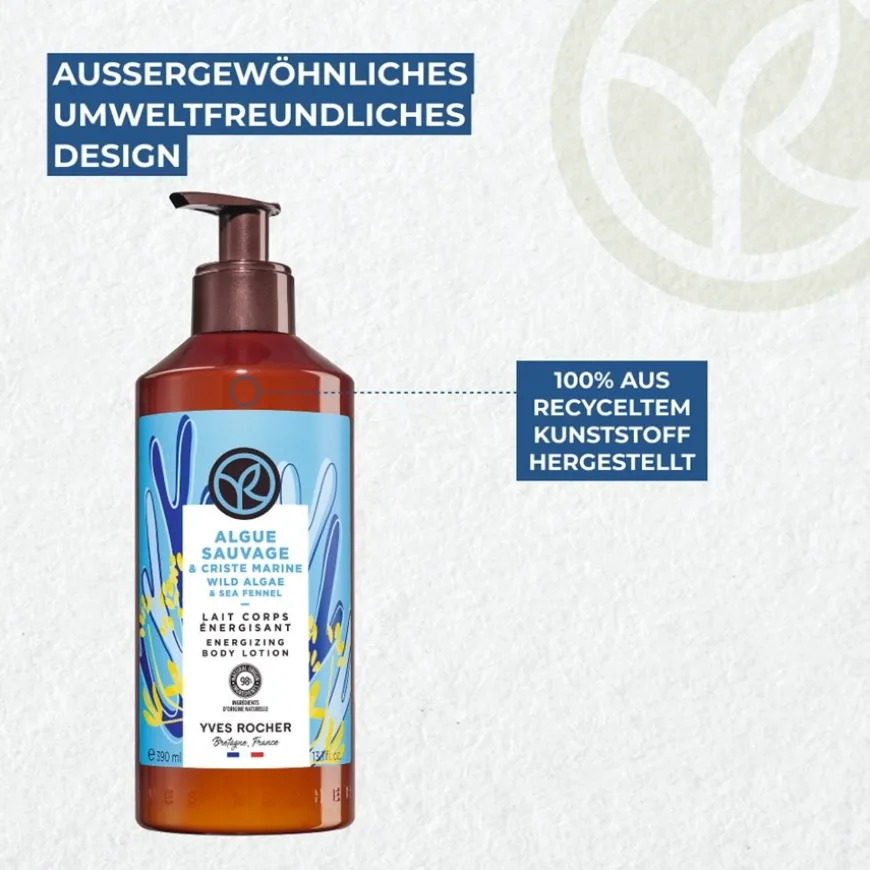 De revitaliserende sensaties van de wilde Bretonse kust in een bodymilk met wilde algen en zeevenkel, met een frisse en verkwikkende zeegeur. Verrijkt met algen uit Bretagne en extract van zeevenkel.
