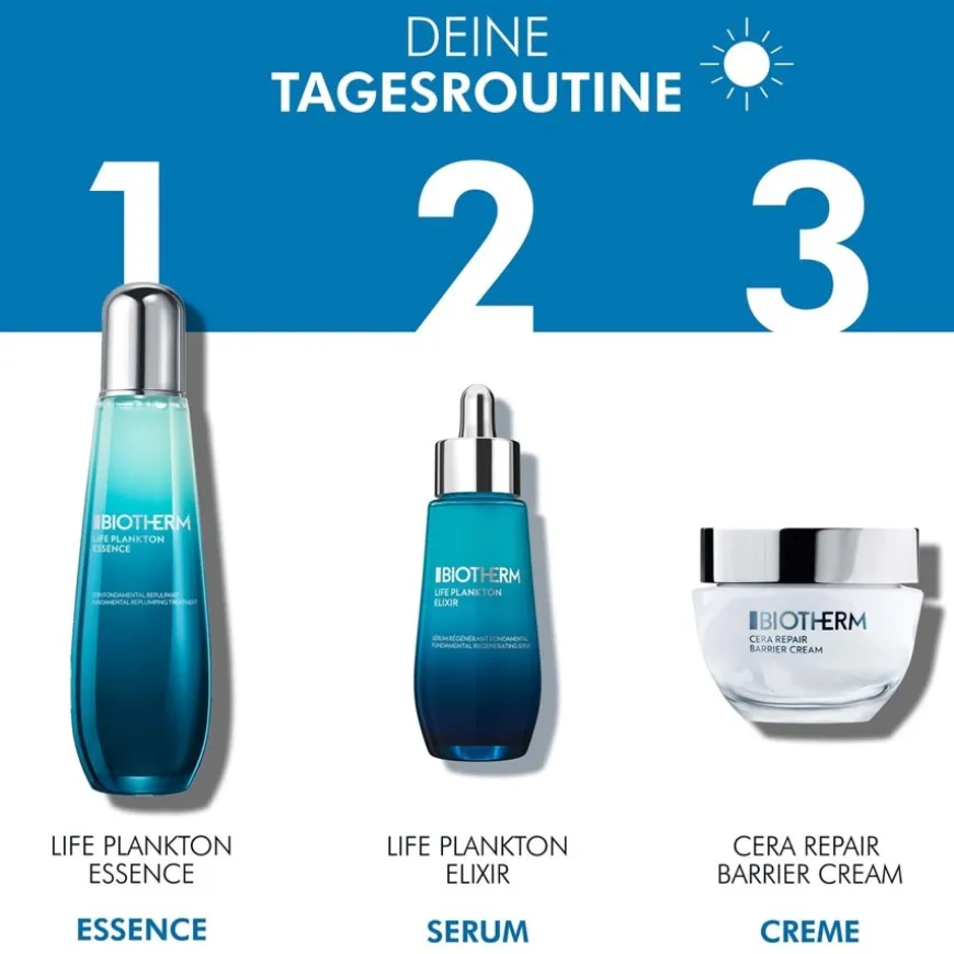 De Biotherm Life Plankton Essence wordt gekenmerkt door zijn unieke, vloeibare textuur. Het verspreidt zich net zo gemakkelijk over de huid als cosmetisch water en geeft het gevoel van een geconcentreerd serum. Als eerste stap in de dagelijkse huidverzorgingsroutine, die ’s ochtends en ’s avonds na de reiniging wordt aangebracht, is de essence bedoeld om de huid voor te bereiden op de volgende producten. De formule bevat Life Plankton™, een ingrediënt afkomstig uit de thermale bronnen van de Franse Pyreneeën. Het product is ontworpen voor gebruik op alle huidtypes.