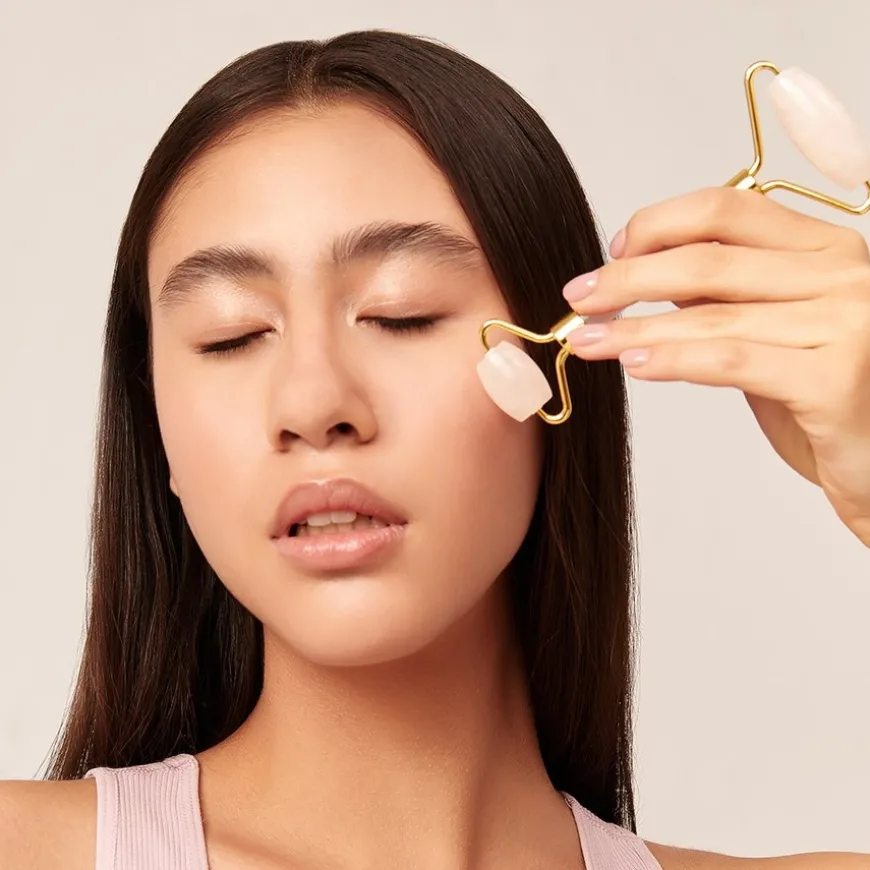 Frisse en rooskleurige teint dankzij massage: GLOV Gezichtsroller Roze Kwarts