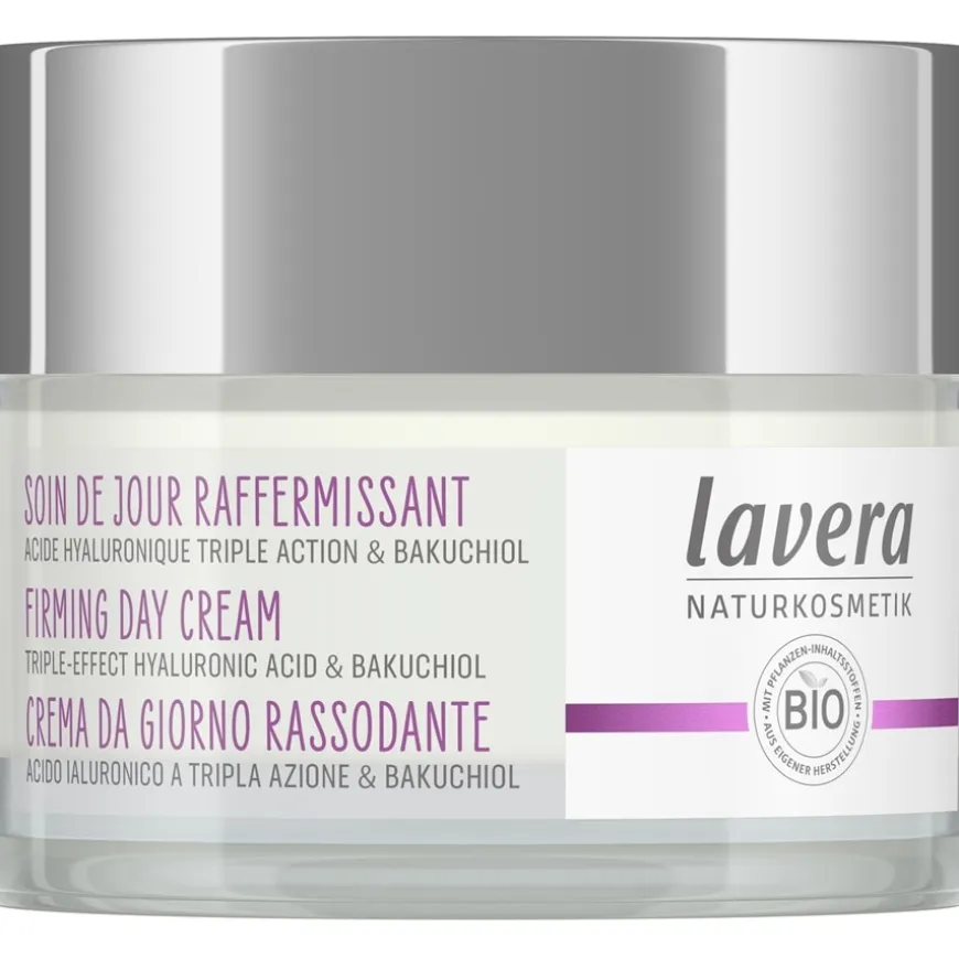 Lavera huidverzorging vermindert rimpels omdat de formule 3-voudig hyaluronzuur bevat, dat het vochtgehalte van de huid verhoogt. Bakuchiol, gewonnen uit de Indiase babchi plant, stimuleert de huid om het collageensysteem op te bouwen en gaat zo het verouderingsproces tegen. De huid voelt soepel aan dankzij de dagelijkse lifting met de dagcrème. De teint ziet er steviger, egaler en stralend fris uit.Breng ’s ochtends een kleine hoeveelheid Lavera Firming Day Care aan op de vooraf gereinigde huid en masseer zachtjes in. De huidverzorging trekt snel in.Firming Day Care is een gecertificeerd natuurlijk cosmeticum en bevat geen minerale oliën, kleurstoffen, geurstoffen of conserveringsmiddelen. De glazen pot kan gerecycled worden en het vouwdoosje is gemaakt van gerecycled materiaal.