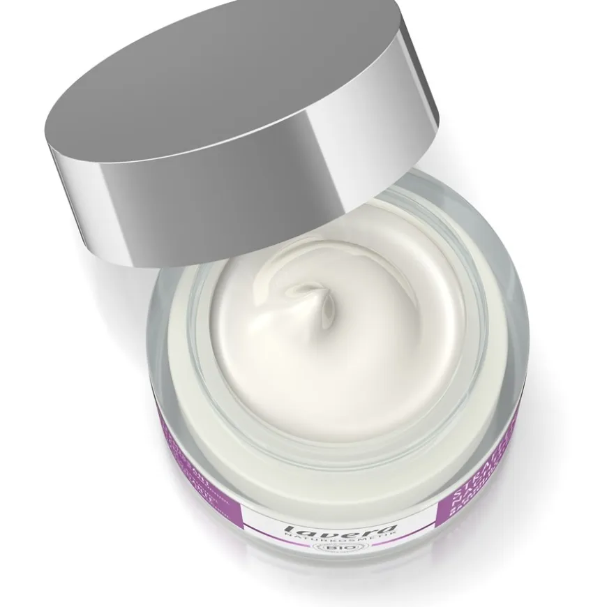 Tijdens de nacht kan de huid in alle rust regenereren. Vooral de rijpere huidprofiteert van deze nachtverzorging. De gezichtshuid ziet er ’s ochtends frisser en steviger uit dankzij de werking van drievoudig hyaluronzuur & bakuchiol. Deze huidverzorging vermindert rimpels en activeert het huideigen collageensysteem. De huid voelt soepel en fluweelzacht aan. Bakuchiol is afkomstig van de Indiase babchi plant en bouwt het collageensysteem van de huid op. Hyaluronzuur voorziet de huid van blijvend vocht en beschermt haar. Deze nachtcrème is geschikt voor alle huidtypes, inclusief de gevoelige huid. Gebruik: Masseer ’s avonds na het reinigen zachtjes een hoeveelheid verstevigende nachtcrème ter grootte van een bosbes in de gezichtshuid.