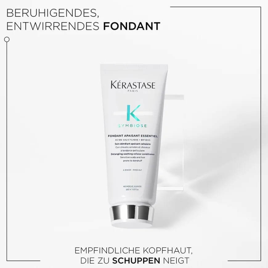 Symbiose Fondant Apaisant Essentiel van Kérastase versterkt de natuurlijke barrière van de hoofdhuid en reinigt haar en hoofdhuid grondig van roos. De conditioner hydrateert het haar, maakt het glad en verbetert de doorkambaarheid. De hoofdhuid wordt gekalmeerd, gevoed en het natuurlijke microbioom versterkt. De formule is speciaal ontwikkeld voor de gevoelige, droge hoofdhuid. Het is vrij van siliconen en sulfaten. Breng de conditioner aan op het haar en de hoofdhuid en masseer het in. Na 2 tot 3 minuten grondig uitspoelen. Geniet van zijdezacht, levendig haar en een gekalmeerde, uitgeruste hoofdhuid!