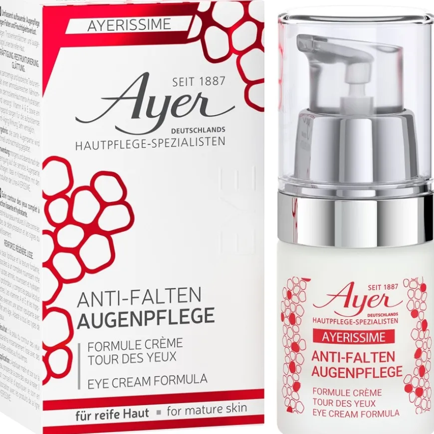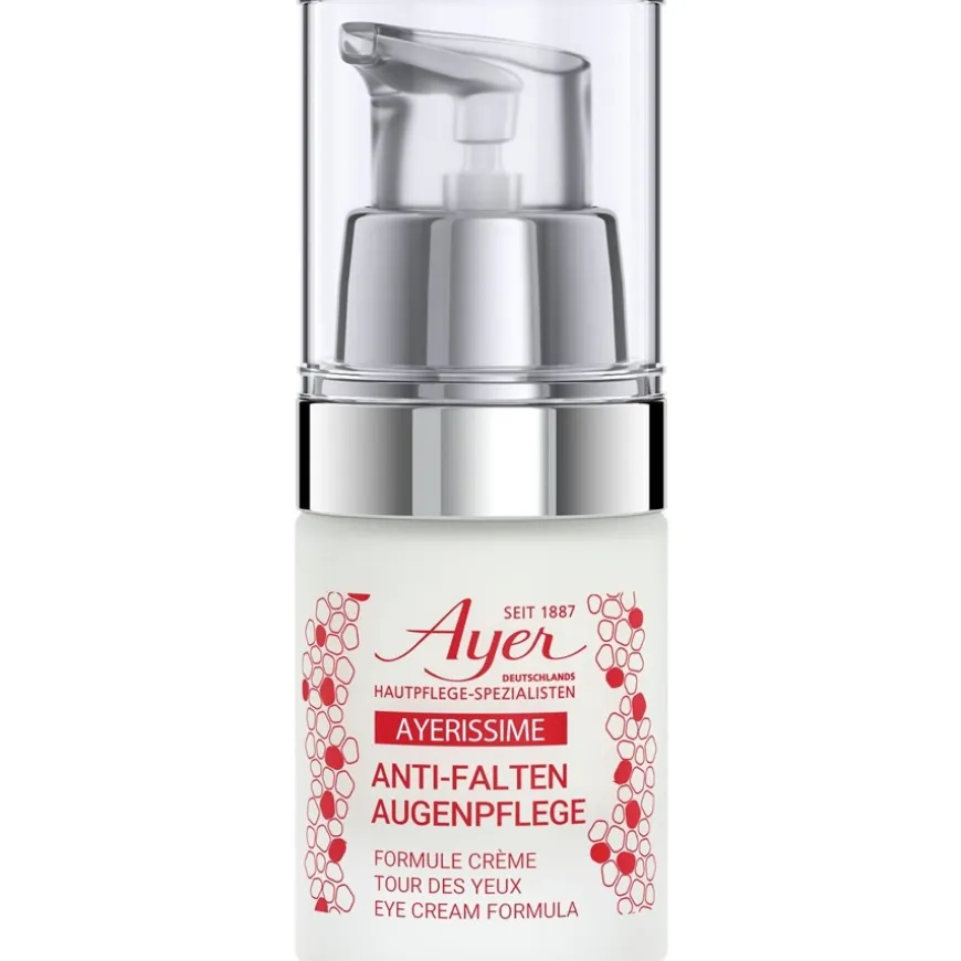 De Ayerissime Eye Cream Formula van Ayer verzorgt en vitaliseert intensief de gevoelige huid rond de ogen. Het hydrateert de huid en bestrijdt tekenen van vermoeidheid en kraaienpootjes. Het verzacht droogtelijntjes en uitgesproken rimpels. Het bevordert de regeneratie van de huid en versterkt haar. De ultrafijne textuur verspreidt bij het aanbrengen een betoverende geur. Breng de oogcrème ’s ochtends en ’s avonds na het reinigen aan op de huid rond de ogen. Ervaar een stralend frisse, stevige en zijdezachte oogcontour!