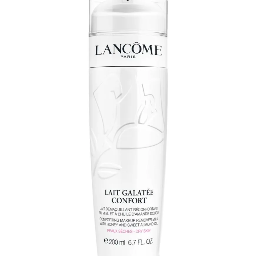 Lancôme’s Lait Galatée Confort is een reinigingsmelk met een rijke textuur die speciaal is ontwikkeld voor de droge huid. De milde formule combineert geselecteerde ingrediënten zoals honing, amandelextract en melkproteïnen tot een romige emulsie. Breng het ’s ochtends en ’s avonds aan en masseer het in met zachte ronddraaiende bewegingen. Het verwijdert op betrouwbare wijze make-up en dagelijkse onzuiverheden van de huid. Zelfs hardnekkige make-up kan op deze manier worden verwijderd. Het resultaat is een schoon en fluweelzacht huidgevoel, zonder trekkerig gevoel of plakkerige resten. De reinigingsmelk kan eenvoudig verwijderd worden met een doekje of afgespoeld worden met water en laat een subtiele, aangename geur achter op de huid.