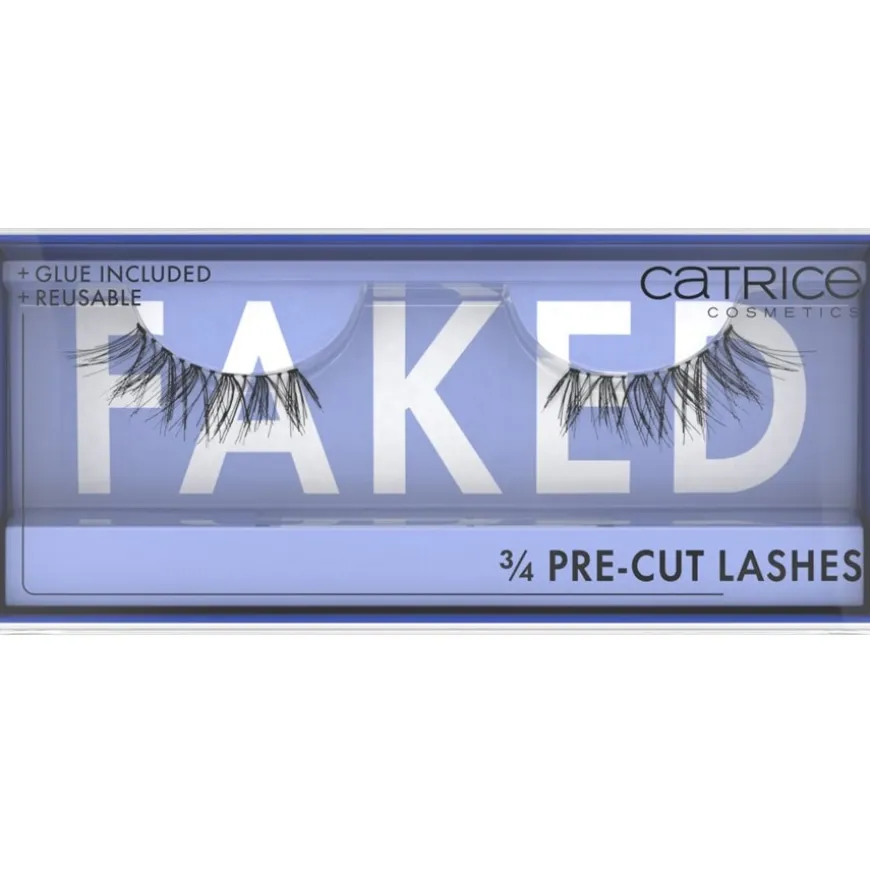 Met deze ultralichte kunstwimpers biedt Catrice een product dat vanaf de eerste keer aanbrengen meerdere keren kan worden gebruikt. De Faked 3/4 Pre-Cut Lashes kunnen bijvoorbeeld een beetje dunne, natuurlijke wimpergroei perfect verbergen voor bijzonder feestelijke gelegenheden. De huid mag echter niet geïrriteerd of te gevoelig zijn voor het aanbrengen. Indien nodig kan de wimperstrip voor het aanbrengen worden ingekort en zo optimaal worden aangepast aan je eigen oogvorm. Na het verwijderen kan het kunstmatige product schoon en netjes worden bewaard in de bijgeleverde verpakking.De eerste stap is om de kunstwimpers van de basis te halen en aan te passen aan de vorm van het oog. Breng nu een dun laagje van de speciale lijm van Catrice aan en laat het ongeveer een halve minuut drogen. De Faked 3/4 Pre-Cut Lashes worden vervolgens op de rand van het ooglid aangebracht en lichtjes aangedrukt. Vanaf deze laatste stap blijft de kleefkracht vele uren behouden, zelfs tijdens inspannende activiteiten. Na het verwijderen van het product wordt een mild oogverzorgingsproduct aanbevolen om de huid van de oogleden te kalmeren.