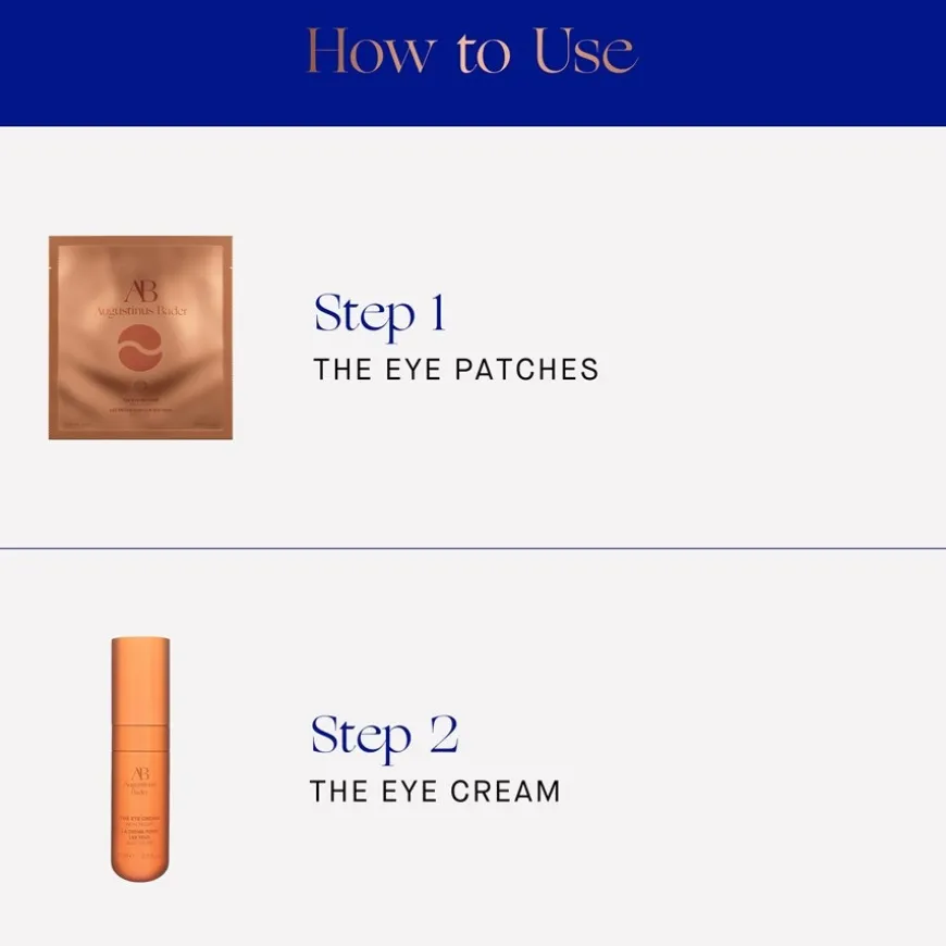 Verdeel de oogcrème gelijkmatig over het gereinigde, droge gebied rond de ogen met je vingertoppen. Ga daarna verder met je gebruikelijke Augustinus Bader routine.