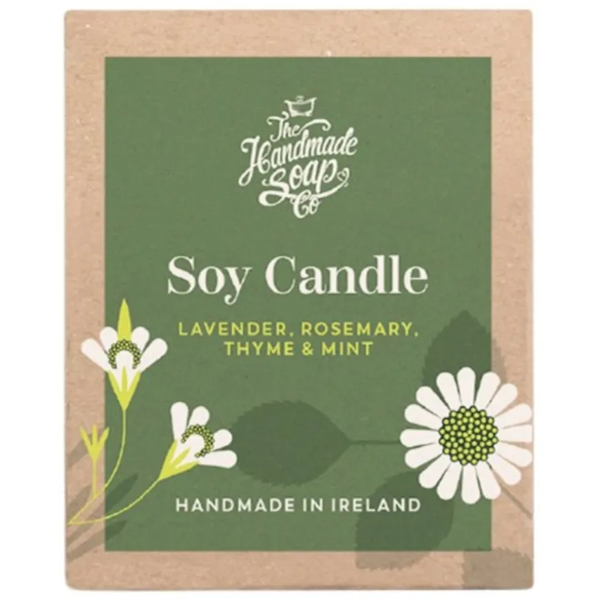 De geurkaars is gemaakt van natuurlijke ingrediënten in een nostalgisch amberkleurig apothekerspotje met een smaakvol etiket. De Handgemaakte Zeep Lavendel & Rozemarijn Kaars creëert met zijn ontspannende geur een natuurlijk ruimteklimaat dat de zintuigen zachtjes stimuleert. Veganistische was van soja, essentiële oliën van Lavandula angustifolia, Rosmarinus officinalis (rozemarijn) en tijm als topnoten en de verfrissende hartnoten met de geur van Mentha spicata (groene munt) en de basisnoten van salie en musk brengen je weer in balans. Alle ingrediënten zijn afkomstig uit de tuin van het bedrijf in Ierland en worden geproduceerd in een gerestaureerde molen, gebruikmakend van de waterkracht van de rivier de Boyne. De collectie is geproduceerd volgens milieubewuste en duurzame criteria
