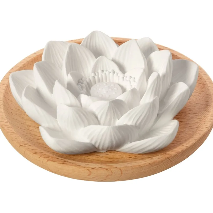 In de cultuur van het Verre Oosten symboliseert de lotusbloesem een nieuw begin, omdat de bloemen zich ’s nachts onder het wateroppervlak sluiten en pas de volgende ochtend weer opengaan. Dit inspirerende symbool maakt de geursteen lotusbloesem bijzonder geschikt voor meditatie en pauzes, maar ook gewoon als decoratieve blikvanger. Slechts een paar druppels zijn genoeg om een oppervlakte van een meter te begeuren. Zoals alle PRIMAVERA producten zijn de geurstenen van de hoogste kwaliteit. Het natuurlijke gips heeft open poriën zodat de geur voor lange tijd in de omgeving vrijkomt. Daarnaast gebruikt PRIMAVERA alleen hout uit duurzame bosbouw.