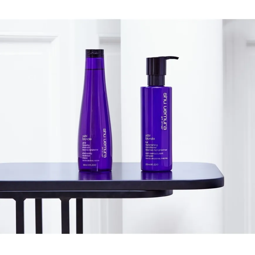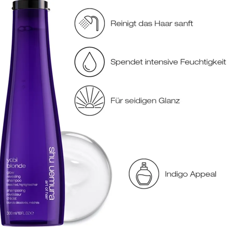 De yūbi blonde gloed shampoo van Shu Uemura is speciaal ontwikkeld voor de behoeften van gebleekt en gehighlight haar. De formule reinigt het haar op milde wijze en verwijdert onzuiverheden terwijl het haar zacht en glad aanvoelt. De shampoo is verrijkt met Japanse pioenroos, die bekend staat om zijn hydraterende eigenschappen, en geeft het haar een natuurlijke glans. De samenstelling van pittige gember, frisse thee en witte musknoten laat een subtiele geur achter. Het resultaat is een verzorgd uiterlijk en een levendige glans van de haarkleur. De shampoo maakt deel uit van de yūbi blonde verzorgingslijn, die gericht is op een uitgebreide verzorging van blond haar en de uitstraling ervan ondersteunt.