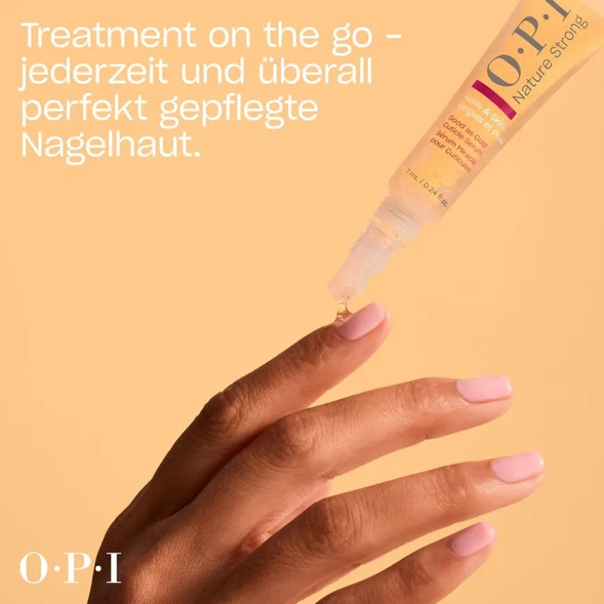 Het Good as Gold Cuticle Serum van OPI is een nagelverzorgingsproduct dat je nagelriemen voorziet van waardevol vocht. Hierdoor worden ze heerlijk zacht en zien ze er altijd verzorgd uit. De gel-achtige formule is verrijkt met glycerine en wordt snel door de nagelriemen opgenomen. Deze worden gekalmeerd en gladgestreken op de lange termijn. De hoogwaardige OPI nagelverzorging is geschikt voor zowel handen als voeten. Een van de hoogtepunten is de innovatieve MoodBloom Scent Technology(TM), die een verkwikkende en vrolijke geur verspreidt. De formule is veganistisch en bevat geen dierlijke ingrediënten of bijproducten. 91,6 procent van alle ingrediënten zijn van natuurlijke oorsprong.
