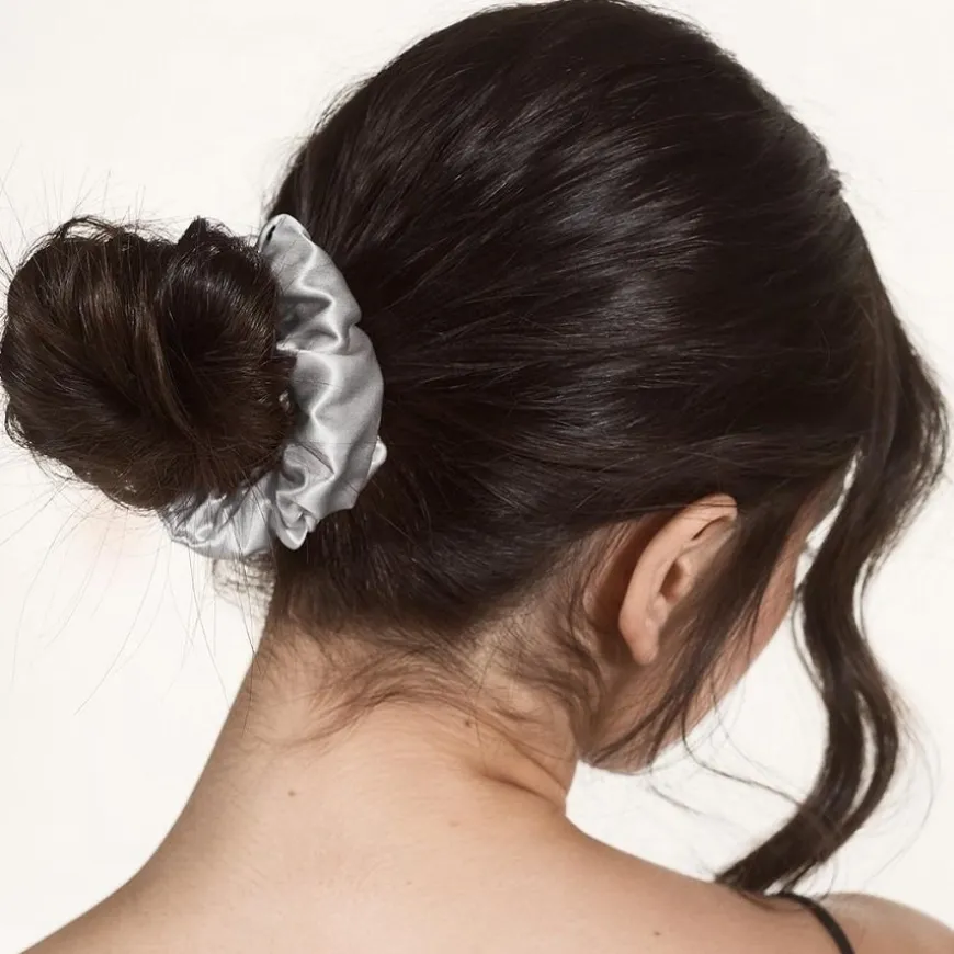 Klassieke knot: Voor elegante of nonchalante knotten, draai het haar in en gebruik de scrunchie als houvast en decoratief element.